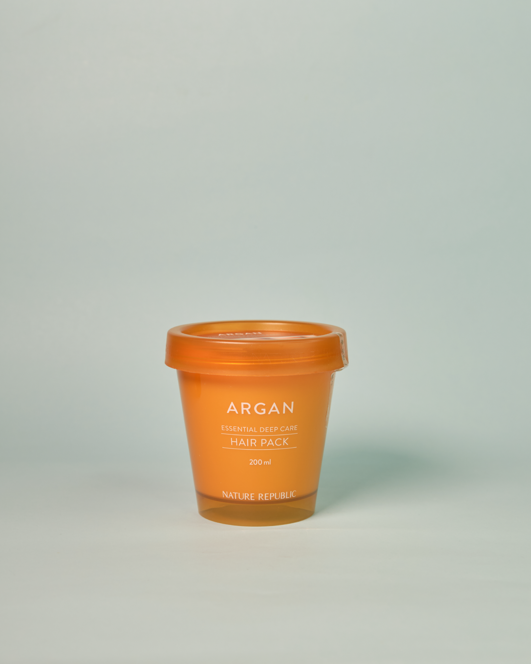 NATURE REPUBLIC Argan Essential Deep Care Hair Pack është pjesë e linjës Argan Essential Deep Care Hair Line, e formuluar me vaj argani me prejardhje nga Franca. Ky trajtim me përmbajtje vaj argani ofron hidratim, riparim, ushqim dhe një ndjesi butësie të të gjithë teksturës së flokut, falë përmbajtjes me vitaminë A, vitaminë E, acide yndyrore omega 6 si edhe acid linolenik. Nga ana tjetër përbërësit e tjerë të vajit të arganit, vajit të trëndafilit dhe evening primrose oil e bëjnë strukturën e flokëve të duket e shëndetshme dhe rrezatuese. Ky trajtim i adresohet flokëve të thatë dhe që janë dëmtuar nga permanente të shumta, dekolorim, pajisjeve stiluese dhe ekspozimit të gjatë në diell. Kjo maskë është shumë efikase në majat e dyzuara dhe ato që këputen lehtësisht.