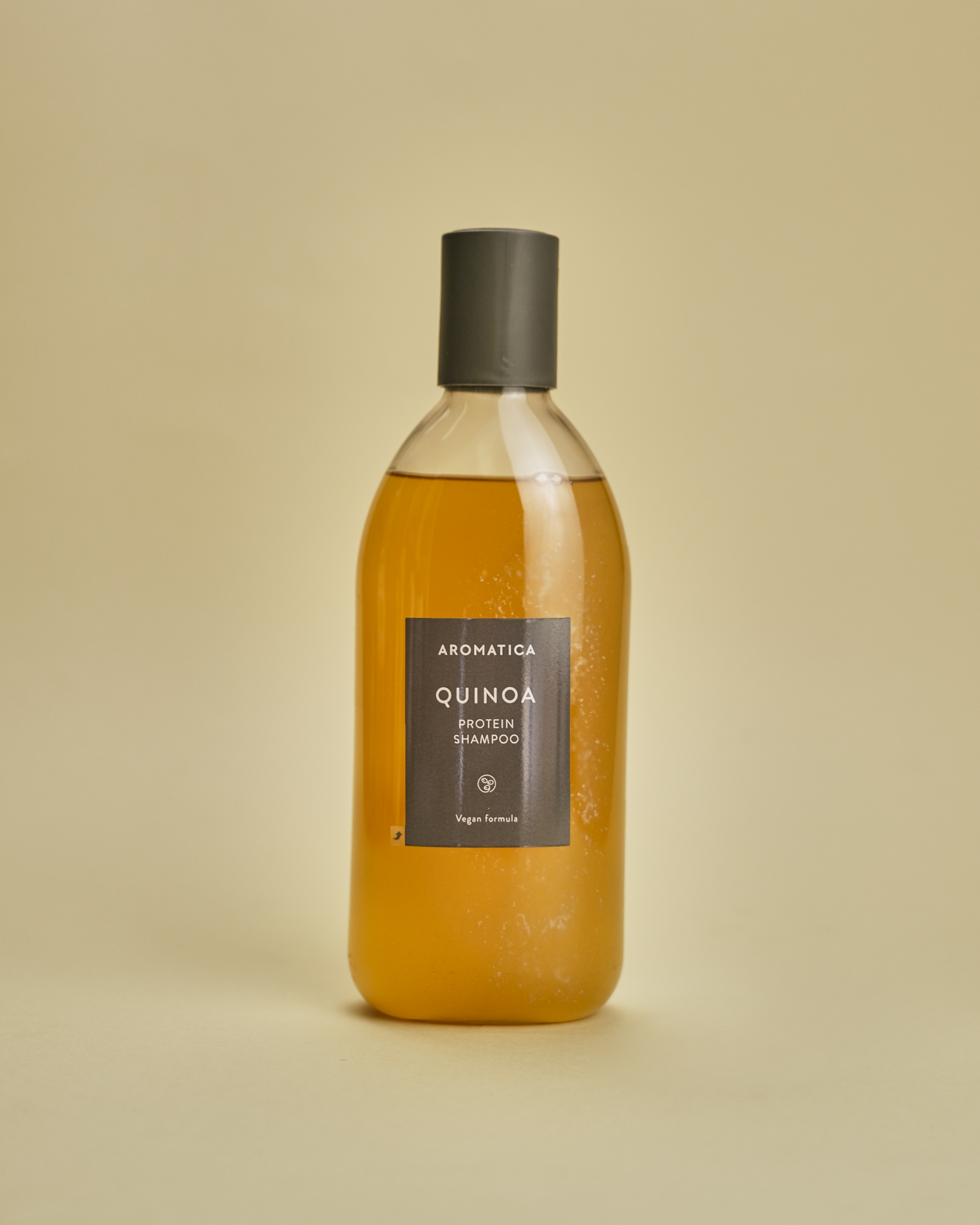 Nga përdorimi i shpeshtë i produkteve kimike, bojrave të flokut, dhe pajisjeve stiluese, humbet kompleksi i membranës qelizore (CMC) të flokëve, duke shkaktuar dyzimin e majave të tyre, si dhe këputjen. Për këtë problematikë, AROMATICA ka krijuar linjën Quinoa Protein, me formulë vegane pa përmbajte sulfatesh, surfactant, silikon, dhe përbërës me prejardhje shtazore. Pjesë e kësaj linje është shampoo, AROMATICA Quinoa Protein Shampoo që përmban quinoa, që tashmë njihet si një “Super Food”, dhe një proteinë vegjetale e hidrolizuar, që përmban përqindje të lartë proteinash dhe aminoacidesh, në madhësi të ndryshme molekulare, si: proteina LPP (Low molecular Polypeptide), me efekt të shkëlqyer në përthithjen nga poret e skalpit, dhe keramide (Tonka Bean-derived Ceramide), që plotësojnë boshllëqet e kompleksit të membranës qelizore. Në këtë mënyrë arrihet kujdesi i flokut, nga brendësia e deri në maja. Kjo shampoo përmban gjithashtu 5 lloje të ndryshme vajrash me origjinë bimore, si: vaji i farave të Pentaclethra macroloba, vaji bajamesh, që njihet si rezistues ndaj nxehtësisë, dhe vaji Baobab, që njihet për rezistencën ndaj rrezeve të diellit UV. Për të përfituar efektet e tij maksimale të shampoo-s, sugjerohet të përdoret së bashku me maskën e linjës: AROMATICA Quinoa Protein Treatment Mask dhe ampulën: AROMATICA Quinoa Protein Hair Ampoule.